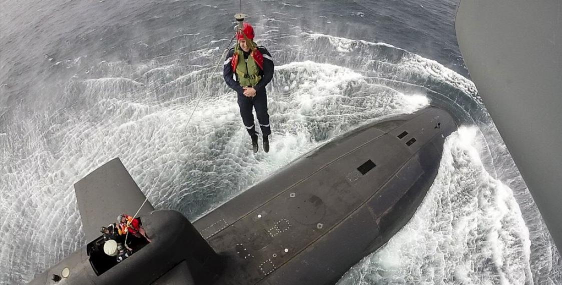 Атомная подлодка "Ле Террибль" находилась в 300 километрах от побережья Бретани, когда на его борт с вертолета спустили Макрона. Фото этого момента в Twitter опубликовал сам французский президент.