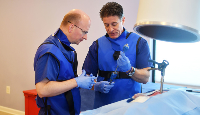 Медики тренируются устанавливать устройство для позвоночника Vertiflex. Фото Джона Шиффмана, Reuters