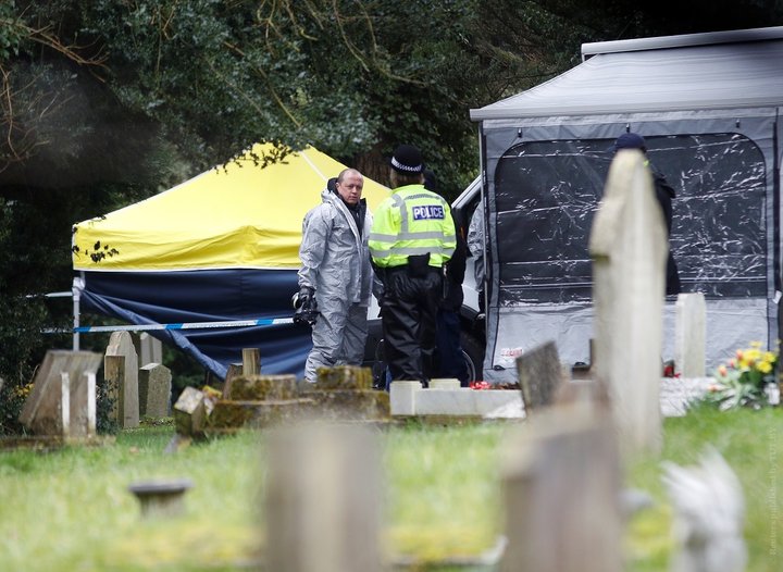 Полиция накрыла тентами и оцепила могилы жены и сына Скрипаля на местном кладбище. Фото: Reuters