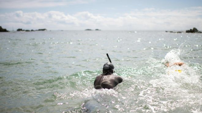 BBC News: Его поджидают опасности в виде акул, шторма, множества медуз и очень низких температур. Он надеется привлечь внимание к проблеме изменения климата; группа ученых будет проводить исследование во время заплыва (англ. яз.).