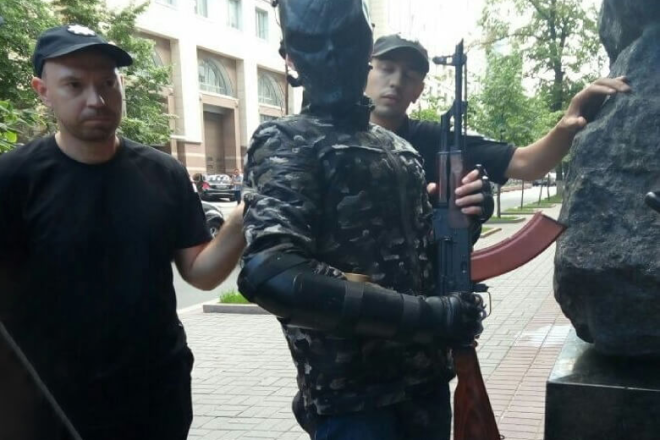 По центру Киева ходил парень с автоматом и кричал “Крым наш“