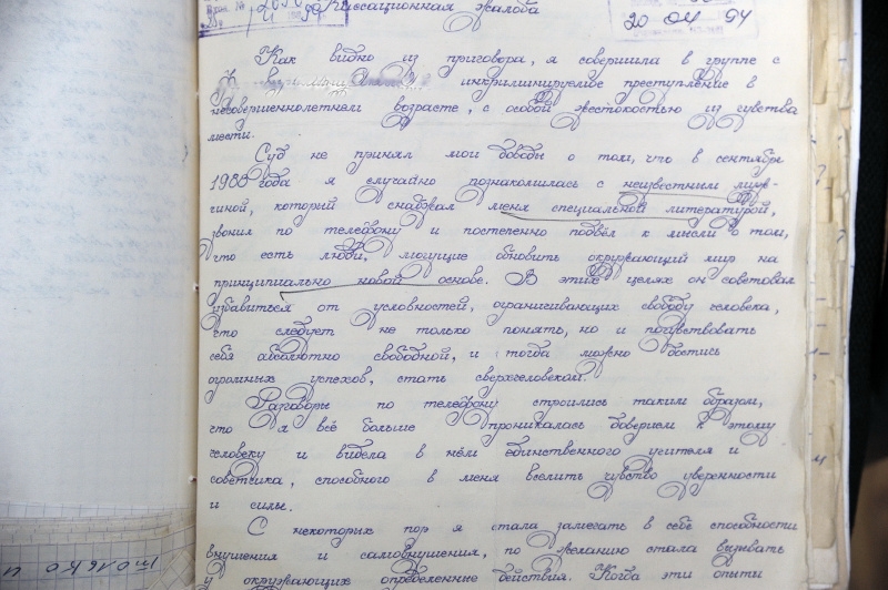 Вера пыталась обжаловать судебный вердикт. Засыпала апелляционные инстанции жалобами. Писала о том, что в этом деле есть неисследованный момент – мистика. Рассказывала, что в 1988 году ее стал преследовать некий человек. Он внушил ей мысль о том, что «есть особенные люди, которые способны обновлять мир совершенно на особенной основе». И необходимость убийства Наташи внушил ей именно он. Даже назвал точную дату. Убийство, со слов Веры, носило ритуальный характер.