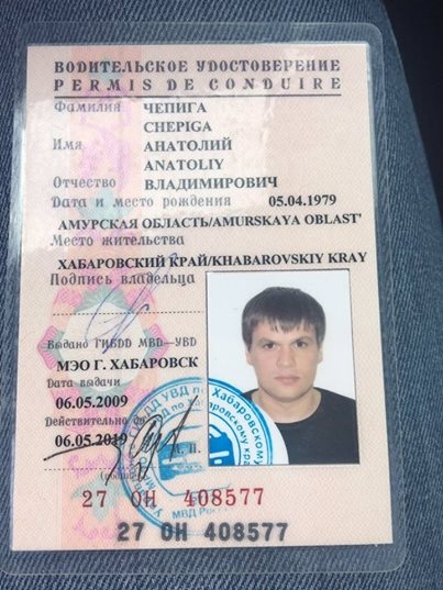 Расследовательская группа Conflict Intelligence Team опубликовала «предполагаемую фотографию» водительских прав Анатолия Чепиги, полученную от анонимного источника.