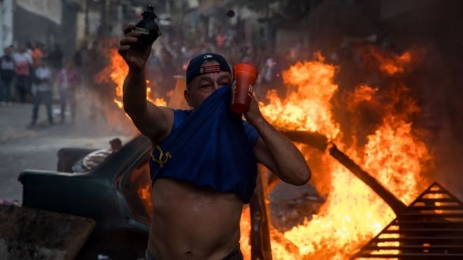 На фотографиях и видеозаписях, опубликованных на оппозиционных интернет-ресурсах Венесуэлы, видны толпы людей, принимающих участие в уличных протестах, начавшихся в районе Котиса возле военной части нацгвардии одновременно с сообщениями о неудавшемся мятеже.