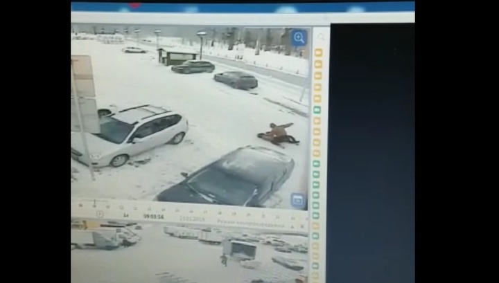 На записи видно, как мужчина набросился на прохожую и сбил ее с ног, после чего нанес ей более десятка ударов ножом.