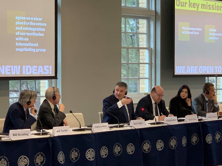 «Мы предлагаем новый формат, который нуждается в поддержке мировой общественности. Мы назвали нашу стратегию деоккупации и реинтеграции Донбасса „Механизмом малых шагов“, потому что считаем, что достичь желаемого результата можно только шаг за шагом», — сказал Арсен Аваков.