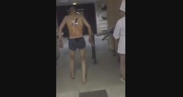 Как передает РенТВ, из тела мужчины торчит окровавленный клинок. Судя по всему, жажда никотина притупляет боль и дает пострадавшему новые силы. Прихрамывая, он идет по коридорам, не обращая внимания на банальную фразу медиков о том, что «курение убивает».