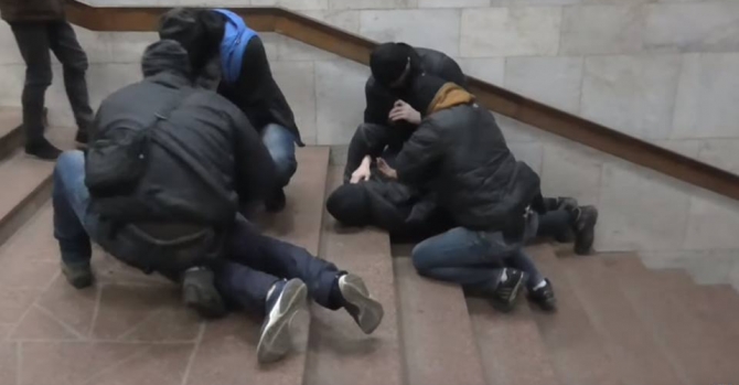 Подозреваемого задержали после установки им взрывного устройства во время массового скопления людей на станции метро "Индустриальная". Ему сообщили о подозрении в совершении террористического акта.