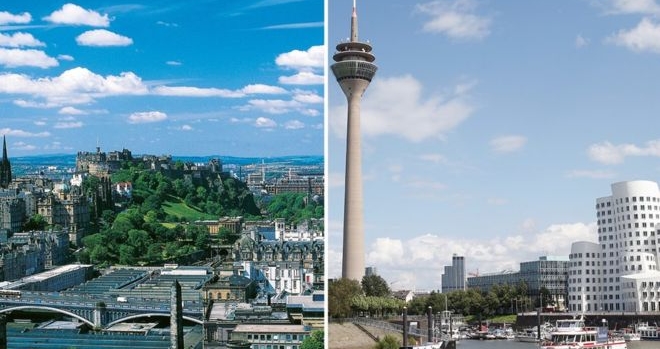Люди, летевшие в Дюссельдорф (справа), неожиданно оказались в Эдинбурге (слева). Фото: GETTY IMAGES