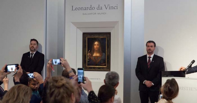 Полотно «Спаситель мира» было продано в ноябре 2017 года с аукциона Christie’s в Нью-Йорке за 450 млн долларов. По информации The New York Times, его выставил на торги российский миллиардер Дмитрий Рыболовлев, который в 2013 году приобрел картину за 127,5 млн долларов у швейцарского арт-дилера Ива Бувье. Издание утверждало, что новым обладателем полотна стал саудовский принц Бадр бен Абдалла бен Мухаммед бен Фархан Аль Сауд. Позже представители Christie’s заявили, что картина была продана департаменту культуры и туризма Абу-Даби.