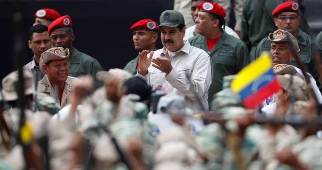 На митинге в Каракасе президент Мадуро высоко оценил действия национальной милиции и "ее готовность с оружием в руках защищать мир, суверенитет, территориальную целостность и независимость своей страны".