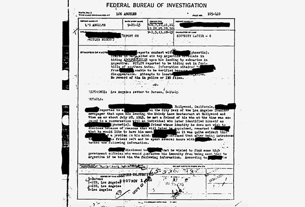Засекреченные сведения были переданы первому директору ФБР Джону Гуверу. Помимо него, этой информацией располагала военная разведка США. Они посчитали расследование неполным и решили не продолжать искать фюрера.