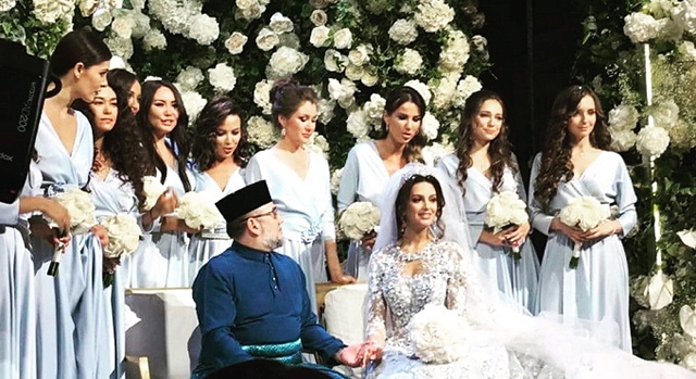 Мухаммад V произвел настоящую сенсацию, когда в ноябре прошлого года в подмосковной Барвихе состоялась его свадьба с россиянкой Оксаной Воеводиной. Тогда церемонию посетили многочисленные высокопоставленные и знаменитые гости.