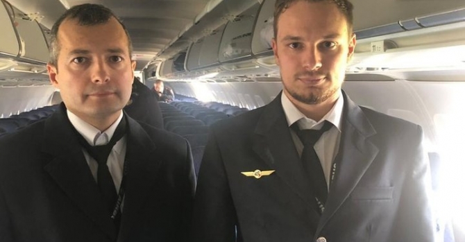 Командир экипажа Дамир Юсупов и пилот Георгий Мурзин. Фото: "Уральские авиалинии"