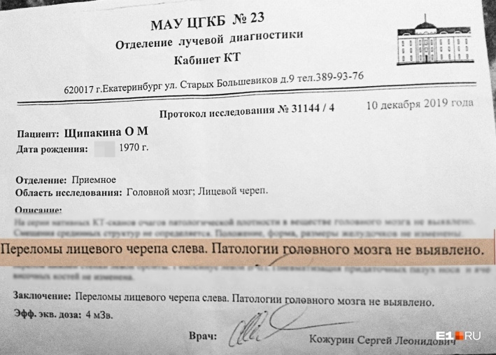В больнице № 23 Оксане сделали компьютерную томографию. Обследование показало, что у женщины сломаны кости черепа. Фото: Оксана Щипакина / E1.RU