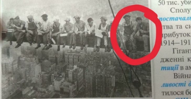 Оригинальный снимок был сделан неизвестным фотографом в 1932 году. На нем изображены строители, которые обедают на одном из элементов высотного здания. Рядом с рабочими теперь появился и грустный Ривз. Фото опубликовано в разделе учебника "Соединенные Штаты Америки в междувоенный период" на 58-й странице. Нигде не написано, что иллюстрация не является оригиналом, также в разделе нет информации об американском актере.