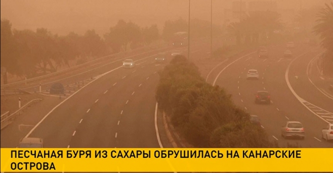 Причиной стал песок, долетевший до островов из Сахары. Ситуация настолько осложнилась, что парализованы три аэропорта, отменены 230 рейсов, видимость на дорогах нулевая, люди не могут выйти из дома.