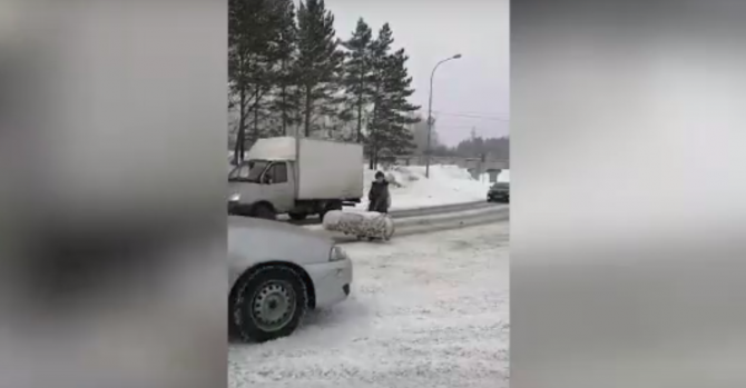Везущая гроб на тележке сквозь снег и слякоть россиянка парализовала движение