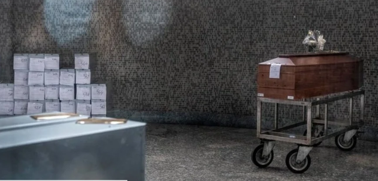 Итальянский фотограф Габриэле Галимберти сделал снимок морга одного из самых больших кладбищ Милана в разгар пандемии коронавируса COVID-19.