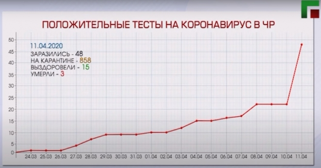 В субботних вечерних новостях министр здравоохранения Сулейманов выступил с ежедневным брифингом. Он вынужден был признать рост количества подтвержденных федеральным центром больных. Но сказал, что это связано в первую очередь с тем, что люди «нарушают меры, введенные главой Чечни Героем России Рамзаном Ахматовичем Кадыровым». Ничего не сказал министр ни о росте выявленных в Чечне зараженных, ни о скончавшихся в субботу двух жителях Чечни Каташеве и Мамаевой.