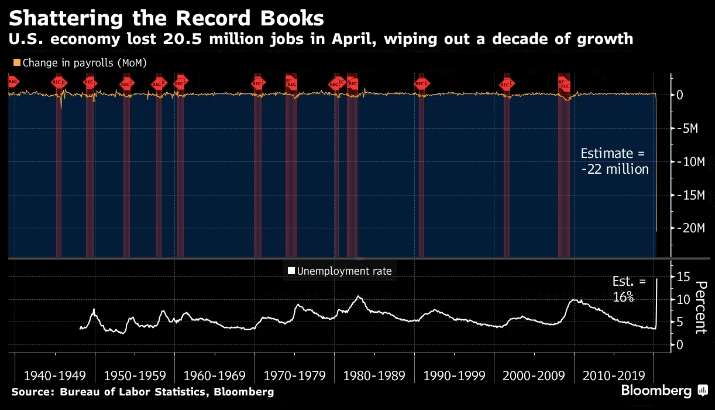 Еще в феврале, до того, как пандемия коронавируса привела к остановке экономики США, этот показатель составлял всего 3.5%. Это был самый низкий уровень за пять десятилетий. Апрель вошел в историю как месяц с самым высоким уровнем безработицы со времен Великой депрессии 1930-х годов.