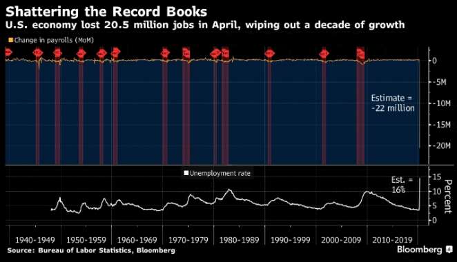 Министерство труда заявило, что без коррекции уровень безработицы в апреле был бы почти на 5 процентных пунктов выше, если бы временные работники были классифицированы как безработные. Уволенными стали приблизительно 4 из каждых 5 безработных американцев. Апрельские потери вычеркивают почти все рабочие места, которые экономика создала в результате беспрецедентного по продолжительности роста за последнее десятилетие, и показывают, насколько ненадежной является занятость для огромного числа американцев.