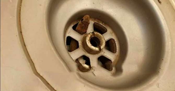 Майк Хиллиард занимался уборкой на кухне, когда под очередной тарелкой в раковине он обнаружил змею, вылезшую из слива. Сначала, зацепив змею рукой, он не понял, что произошло, однако вскоре до него дошло, что в его раковине засела маленькая сетчатая коричневая змея.