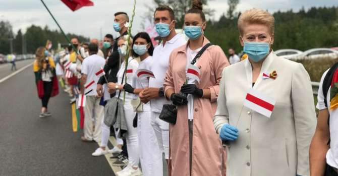 — Любой стране важно знать, что она не одна. И сегодня мы показываем, что белорусы не одиноки, — сказала перед акцией «Путь свободы» Грибаускайте.