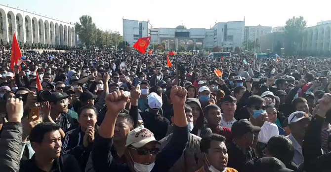 Местное информационное агентство «24КG» пишет, что на площади собрались около 5 тысяч человек – это сторонники партий, не прошедших в законодательный орган.