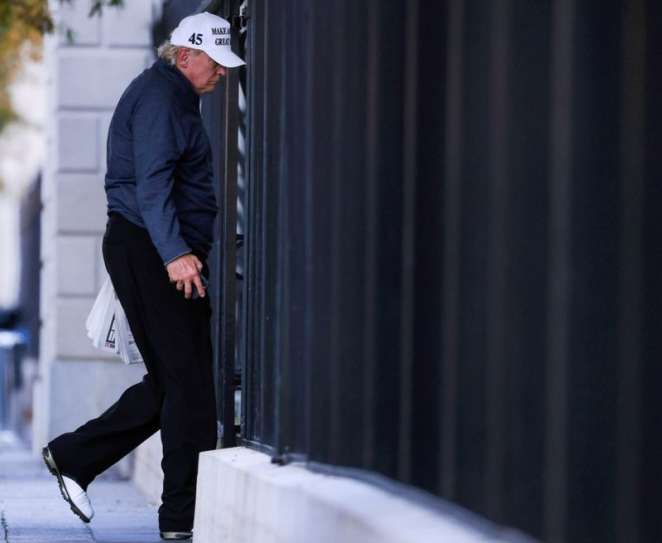 Сам Дональд Трамп входил на территорию Белого дома в сопровождении секретной службы в обычной одежде, держа в руках газету и айфон, а не автомат или тому подобное.