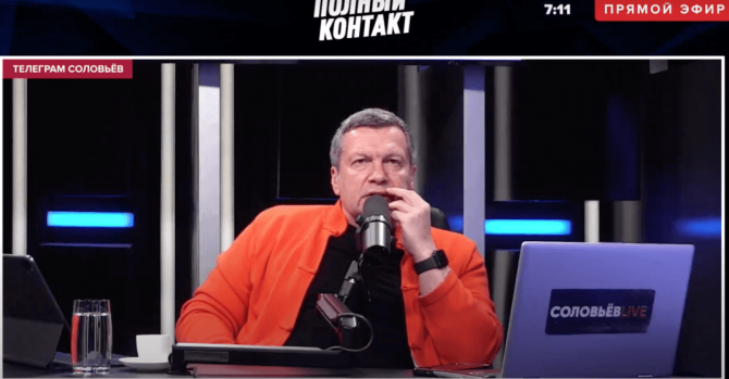 Скриншот из эфира на YouTube-канале «Соловьёв Live»