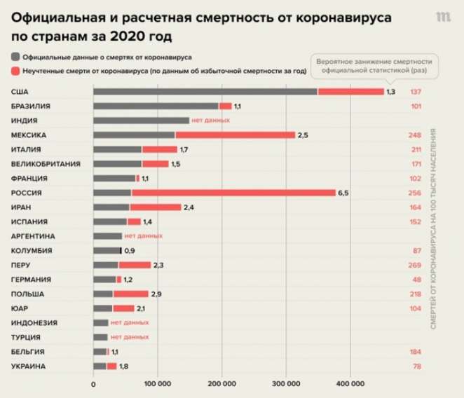 Это значит, что Россия в 2020 году заняла второе (после США) место по числу жертв коронавируса и вошла в пятерку самых пострадавших из расчета на душу населения.