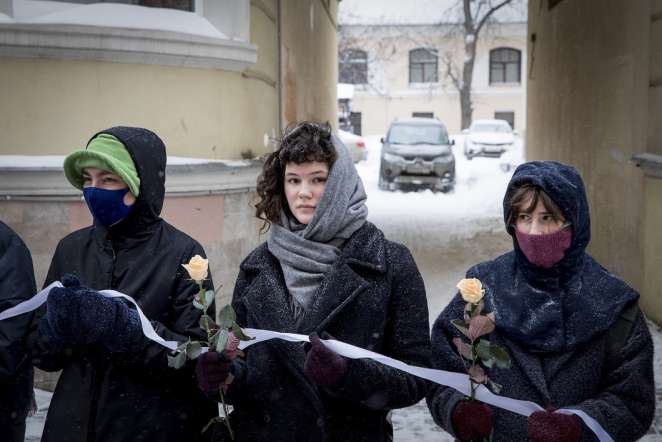 Акция прошла на Старом Арбате, у памятника Александру Пушкину и Наталье Гончаровой, основная ее цель — выразить поддержку женщинам-политзаключенным, сообщает Новая газета.