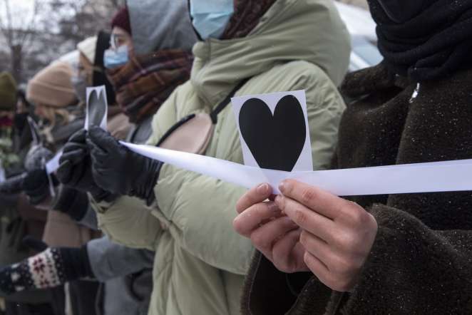 «В День всех влюбленных мы хотим выразить свою поддержку не только Юлии Навальной, семью которой долгие годы преследует государство за оппозиционную деятельность, но и всем женщинам-политзаключенным — всем, кого сейчас во время мирных протестов избивает и пытает полиция (как студентку Алену Китаеву), всем, кто проводит свои дни в судах, полицейских автобусах и спецприемниках», — так акцию описали сами организаторы.