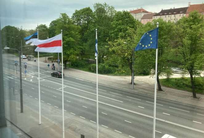 Белорусский национальный флаг сегодня также подняли в Таллинне (Эстония), сообщает телеграмм-канал «Баста!».