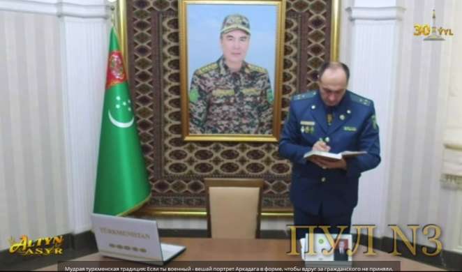 «Мудрая туркменская традиция: Если ты военный – вешай портрет Аркадага в форме, чтобы вдруг за гражданского не приняли», – иронизирует «Пул №3».