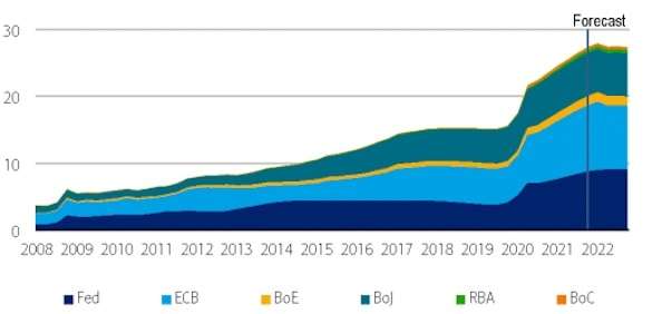 И теперь, породив инфляционный взрыв, центробанки дружно жмут на тормоза. ЦБ Канады уже свернул выкуп активов, ЦБ Австралии на прошлой неделе без предупреждения перестал выкупать госбонды в рамках программы контроля доходности, обрушив их котировки. ЕЦБ уже сократил денежные вливания, но продолжает увеличивать баланс на 30 млрд евро в неделю.