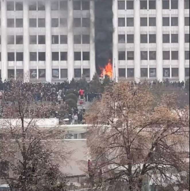 Как сообщают местные телеграм-каналы, протестующие штурмуют городскую администрацию Алматы. Вся площадь, на которой тысячи людей, в дыму. В итоге митингующие ворвались в акимат Алматы.