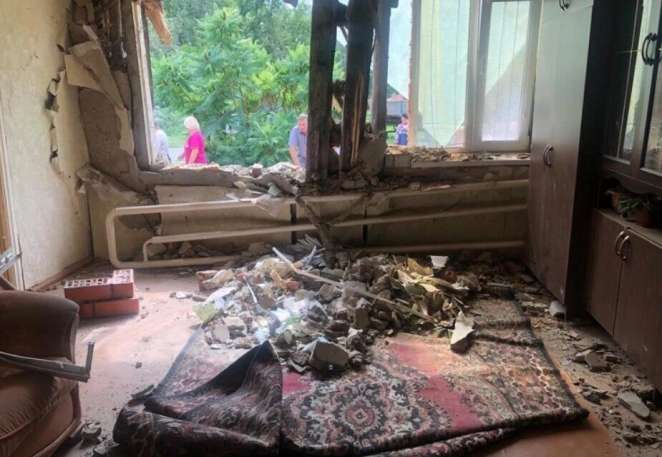 Пострадавший дом в поселке Уразово, в него въехала техника российских военных.