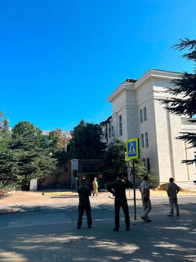 По словам оккупационных властей, в крышу штаба влетел дрон, сбит не был. Хотя, как утверждают кремлевские пропагандисты, российские военные «работали стрелковым оружием».