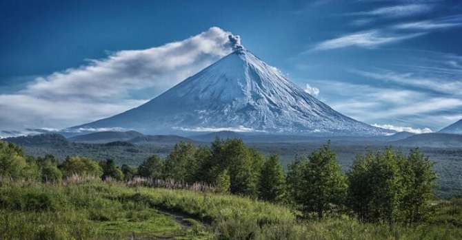 Ключевская сопка — самый высокий действующий вулкан Евразии, его высота достигает 4,8 тыс. м.