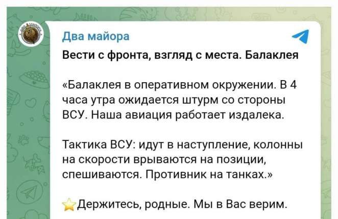 В целом, в прокремлевских пабликах, поддерживающих «спецоперацию», панические и истерические настроения. Они уже открыто говорят, что Балаклею «сдали».
