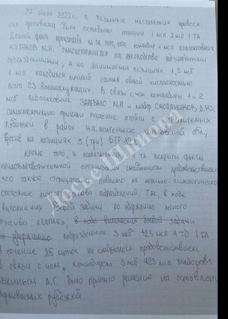 Согласно телефонограмме российского офицера, командир полка подполковник Кулаков «самоустранился от руководства» вверенных ему подразделений, оставив на позициях всего 23 военнослужащих, чем подставил под удар своих боевых товарищей. Последние не стали долго думать и, оставив свои позиции, отошли в направлении Долгенького, которое, как известно, было уволено ВСУ 12 сентября.