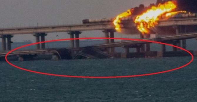 «Взрыв был под мостом, в месте, которое фура проехала. Взрывчатка была на опоре. Взрывом подбросило пролет, который деформировался и съехал в сторону, в море», - отмечают комментаторы.