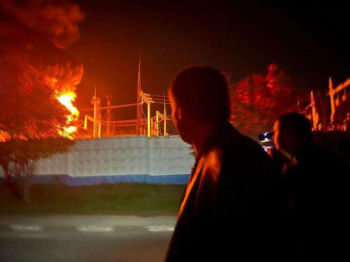 Подстанция загорелась. Вскоре в городе пропало электричество.