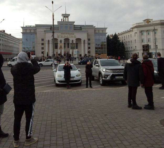 ![Жители Херсона вышли встречать ВСУ с украинскими флагами]()