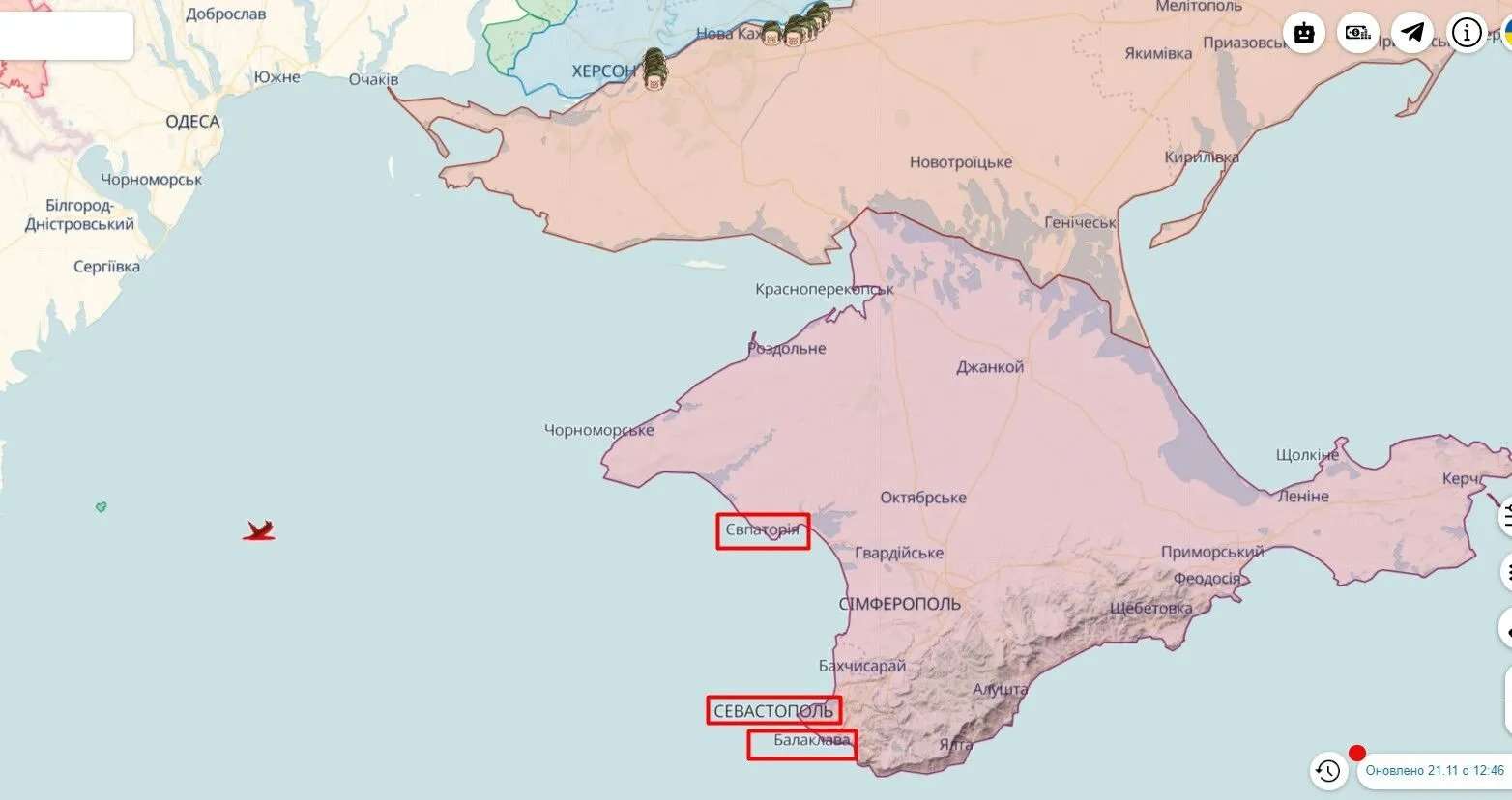 Отметим, от точек взрыва до возможного расположения украинских сил обороны - около 300 км. Кроме того, стоит отметить, что точки, где было громко, стратегически важны для армии РФ: там либо в бухтах базируются корабли, либо рядом расположены склады БК или аэродромы.