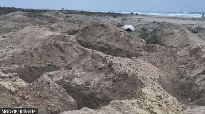 Окопы на пляже близ села Молочное. Фото: Минобороны Украины