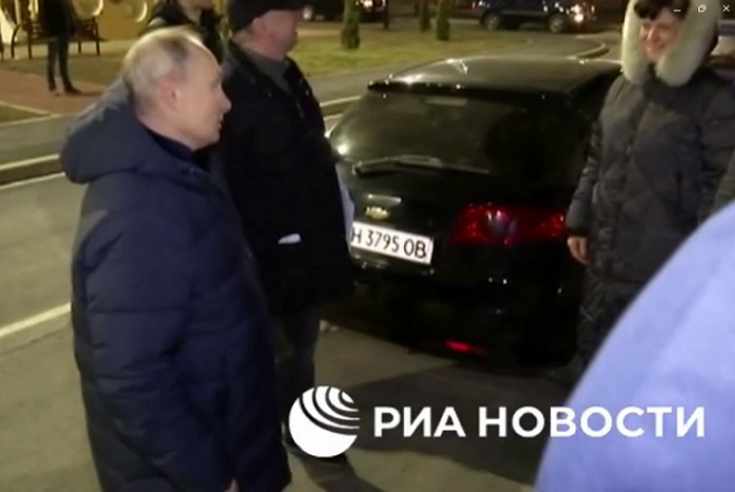 На видео якобы случайной встречи Путина с жителями Мариуполя кто-то из людей на фоне выкрикнул издали слова «Это все неправда! Это напоказ!». Охранники начали делать знаки друг другу. Этот вариант видео нашли на телеграм-канале РИА Новости.