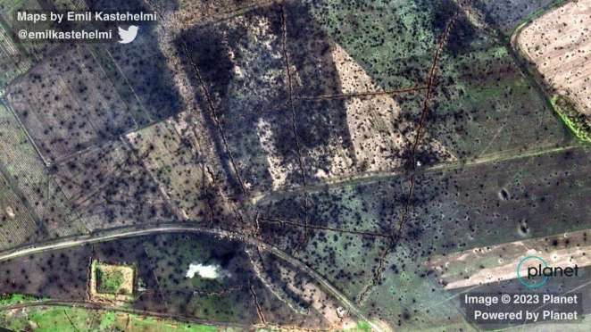 При детальном изучении снимков выясняется, что, несмотря на интенсивность обстрелов в районе Хромово, укрепления украинских защитников могут быть пригодными для использования.